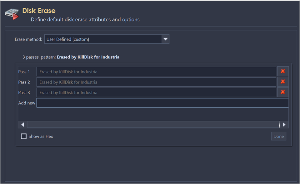 User Defined erase method allows to define any kind of new erase algorithms based on user requirements. User indicates the number of times
