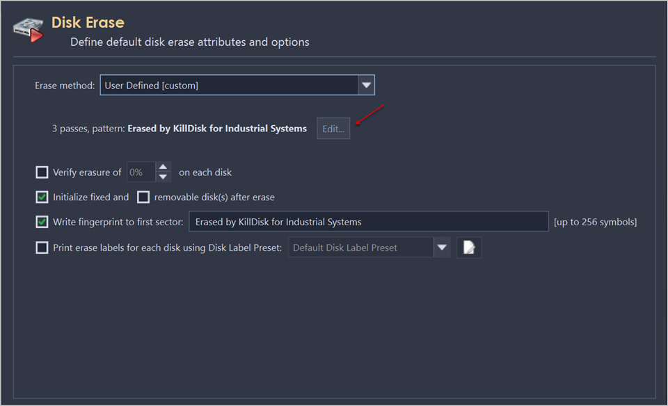 open Preferences in the main menu or Erase(wipe) start dialog;