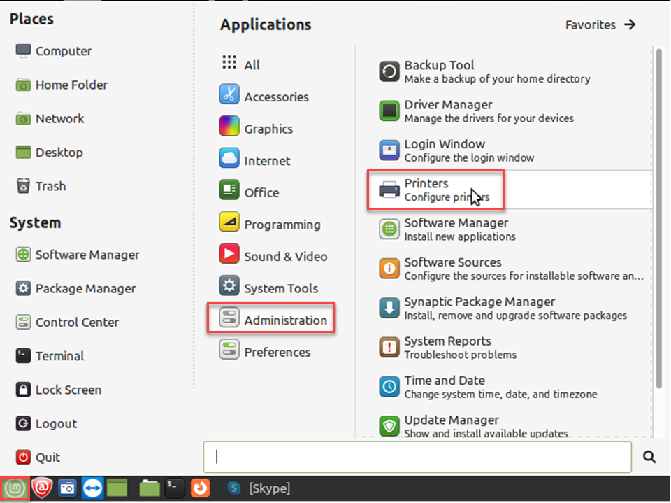 Add a printer to the Linux system and prepare it for printing labels.