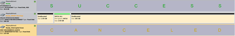 After the process finishes, each disk will be highlighted with the overall result (Success, Failed, Canceled,