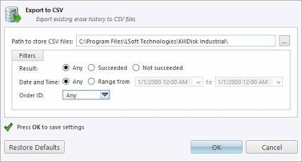 KillDisk Industrial is able to export certificates and reports as well as Event Journal to the external